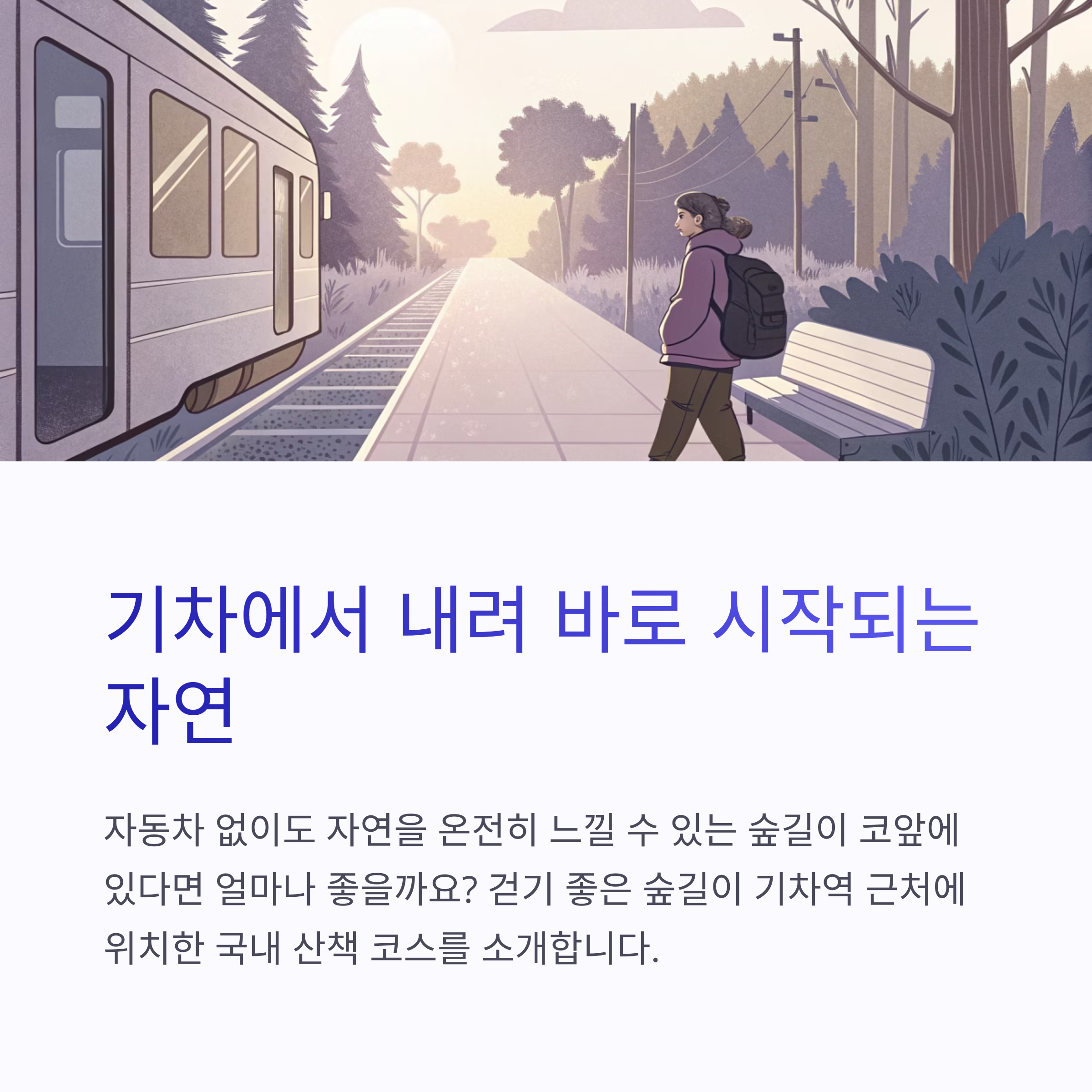 이번 글에서는 걷기 좋은 숲길이 기차역 근처에 위치한 국내 산책 코스를 중심으로,