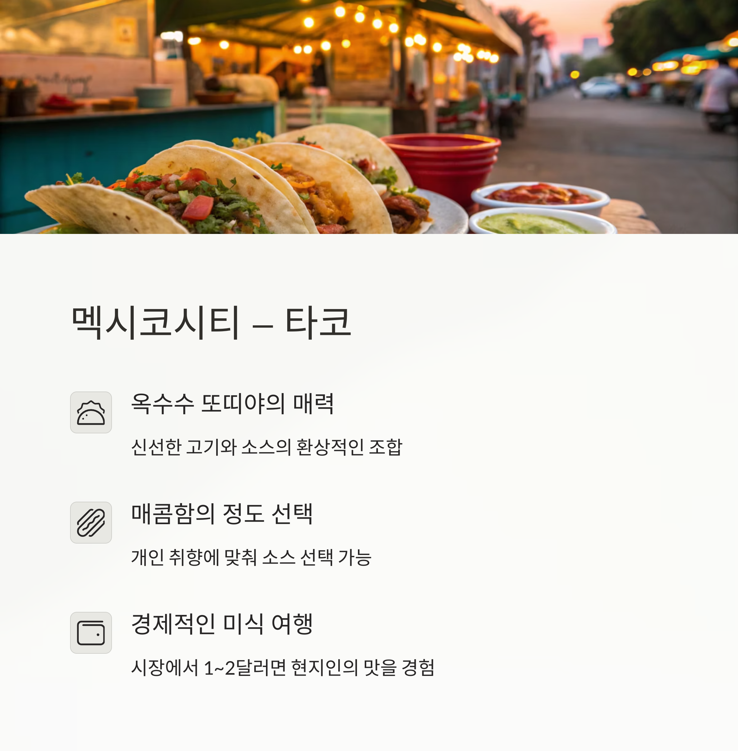 세계 각국의 길거리 음식은 단순한 먹거리를 넘어 문화를 체험하는 또 다른 방식입니다. 현지의 맛과 냄새, 사람들과의 교감을 통해 잊지 못할 여행의 추억을 만들어보세요. 골목에서 만나는 작은 한 끼가, 여행을 더 특별하게 만들어 줄 것입니다.