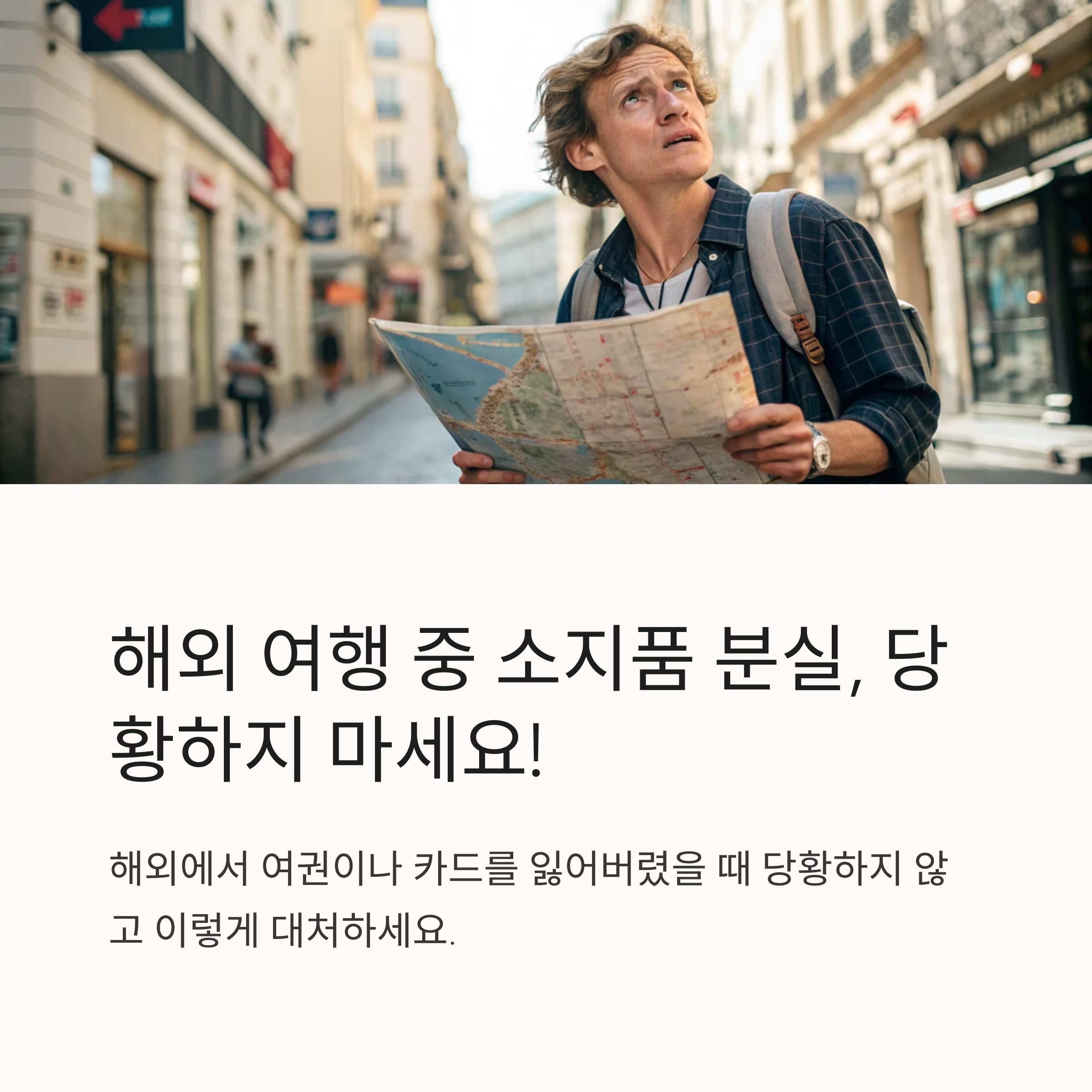 해외여행 중 소지품 분실은 누구에게나 일어날 수 있는 사고입니다. 순간 당황하고 불안해지기 쉽지만, 침착하게 대처하는 것이 무엇보다 중요합니다. 여권, 지갑, 휴대폰 등을 분실했을 때 취해야 할 행동을 미리 알고 있다면 피해를 최소화하고 빠르게 상황을 수습할 수 있습니다. 이번 글에서는 해외에서 분실 사고가 발생했을 때 꼭 알아야 할 대처 방법과 유용한 팁을 정리했습니다. 여행 중 돌발 상황을 대비해 미리 준비하고 든든한 마음으로 떠나보세요.