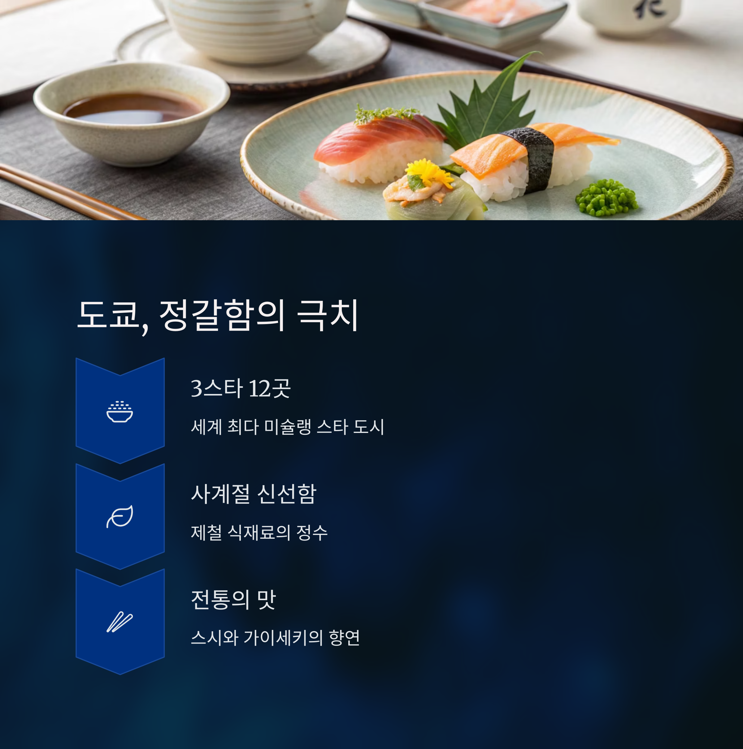 | 프렌치 미식 | 스시&가이세키 | 뉴 아메리칸 퀴진 |