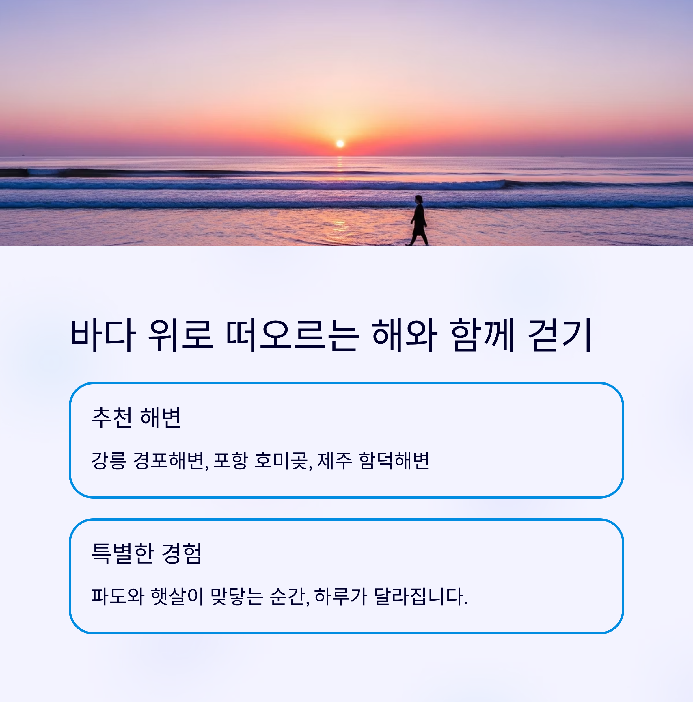 강릉 경포해변, 포항 호미곶, 제주 함덕해변은