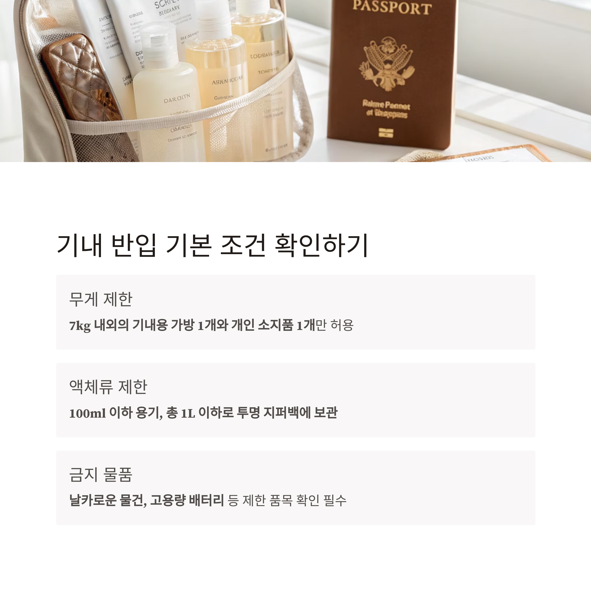 | 액체류 100ml 이하 지퍼백 보관 | ✅ |