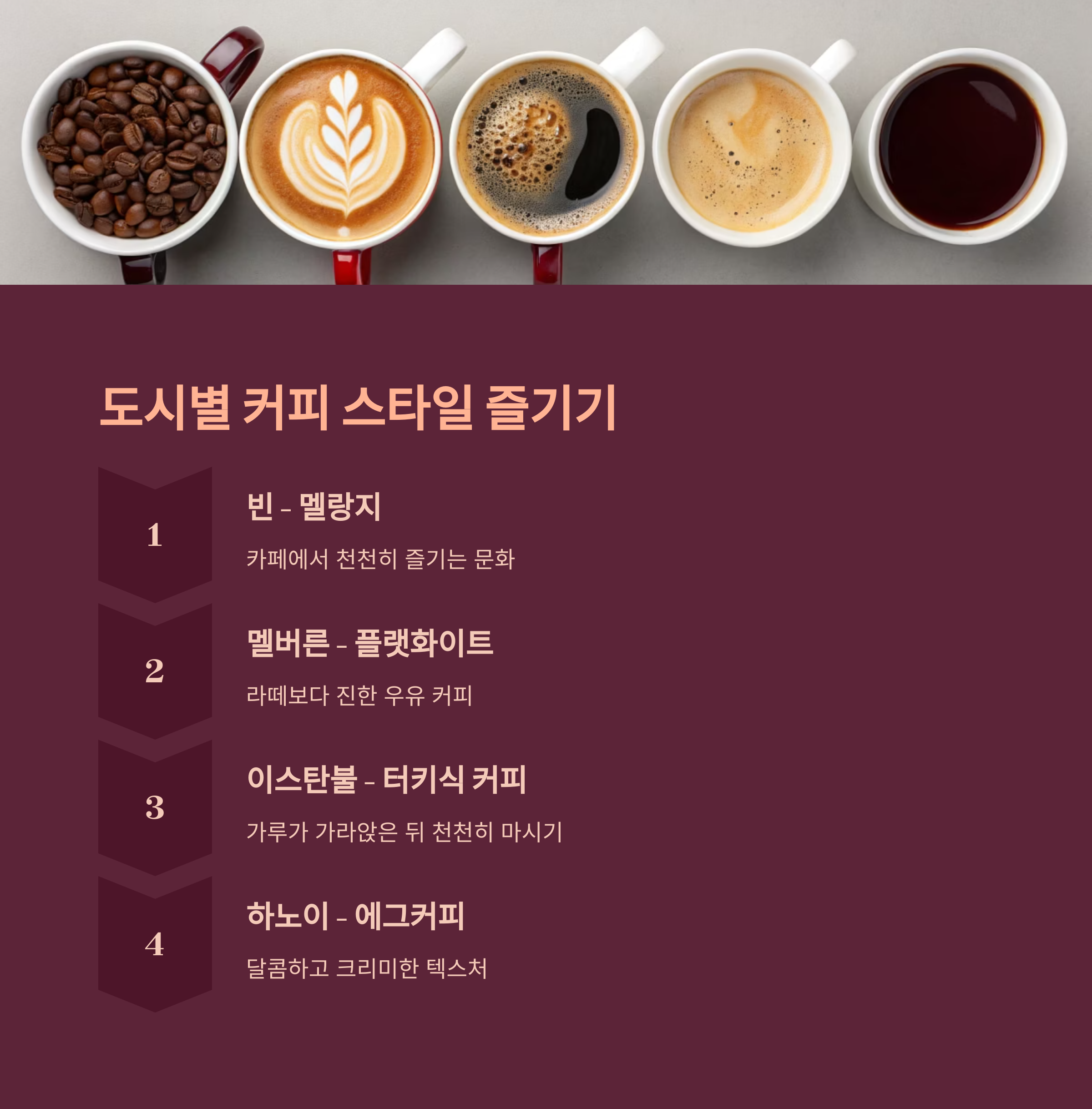 커피 도시는 각기 다른 문화와 스타일을 갖고 있으니, 방문 전 커피 주문법과 마시는 방식을 알고 가면 더 풍성한 경험이 됩니다.