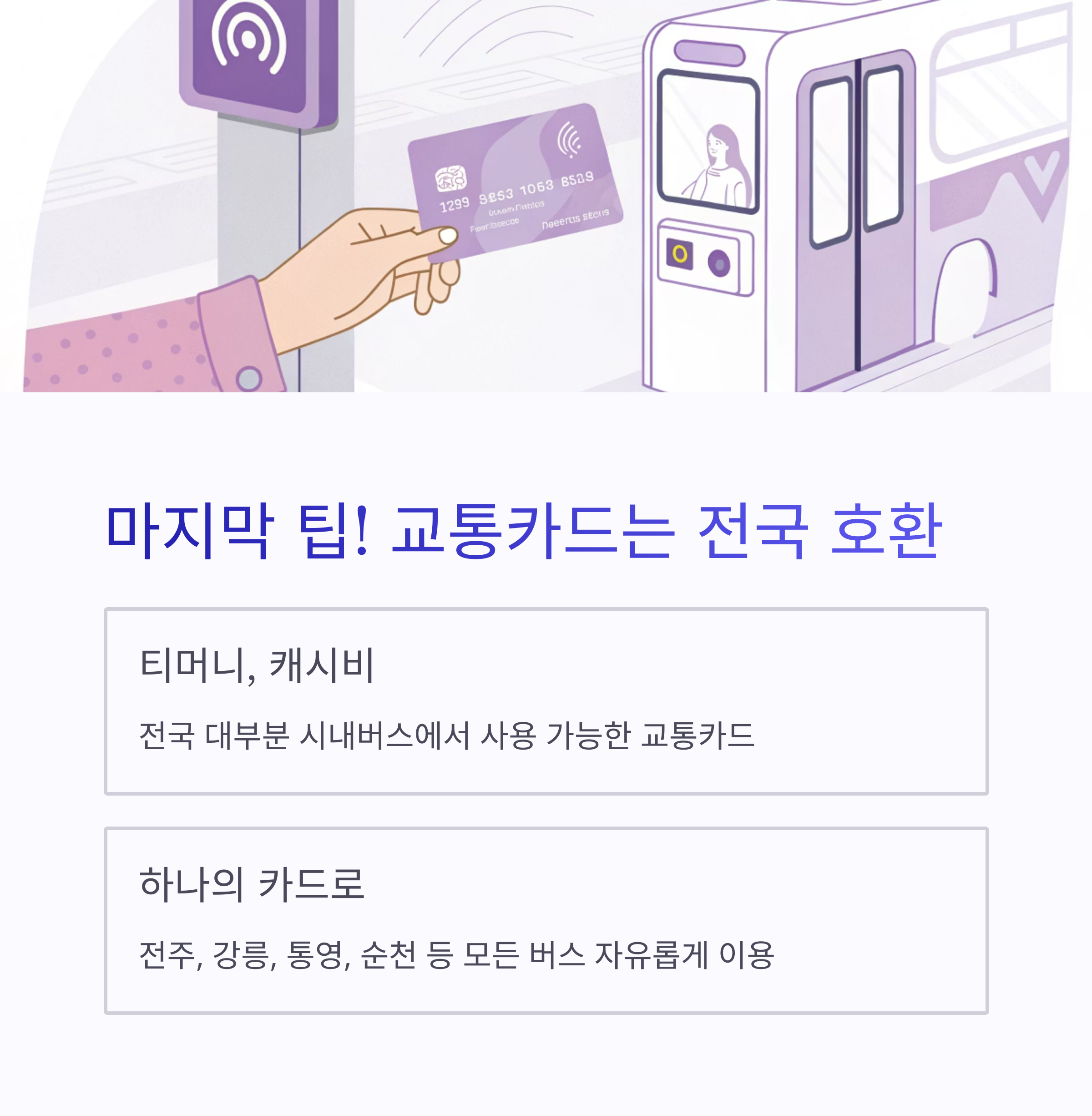 카드 하나로 전주, 강릉, 통영, 순천 등지의 모든 버스를 자유롭게 이용할 수 있어