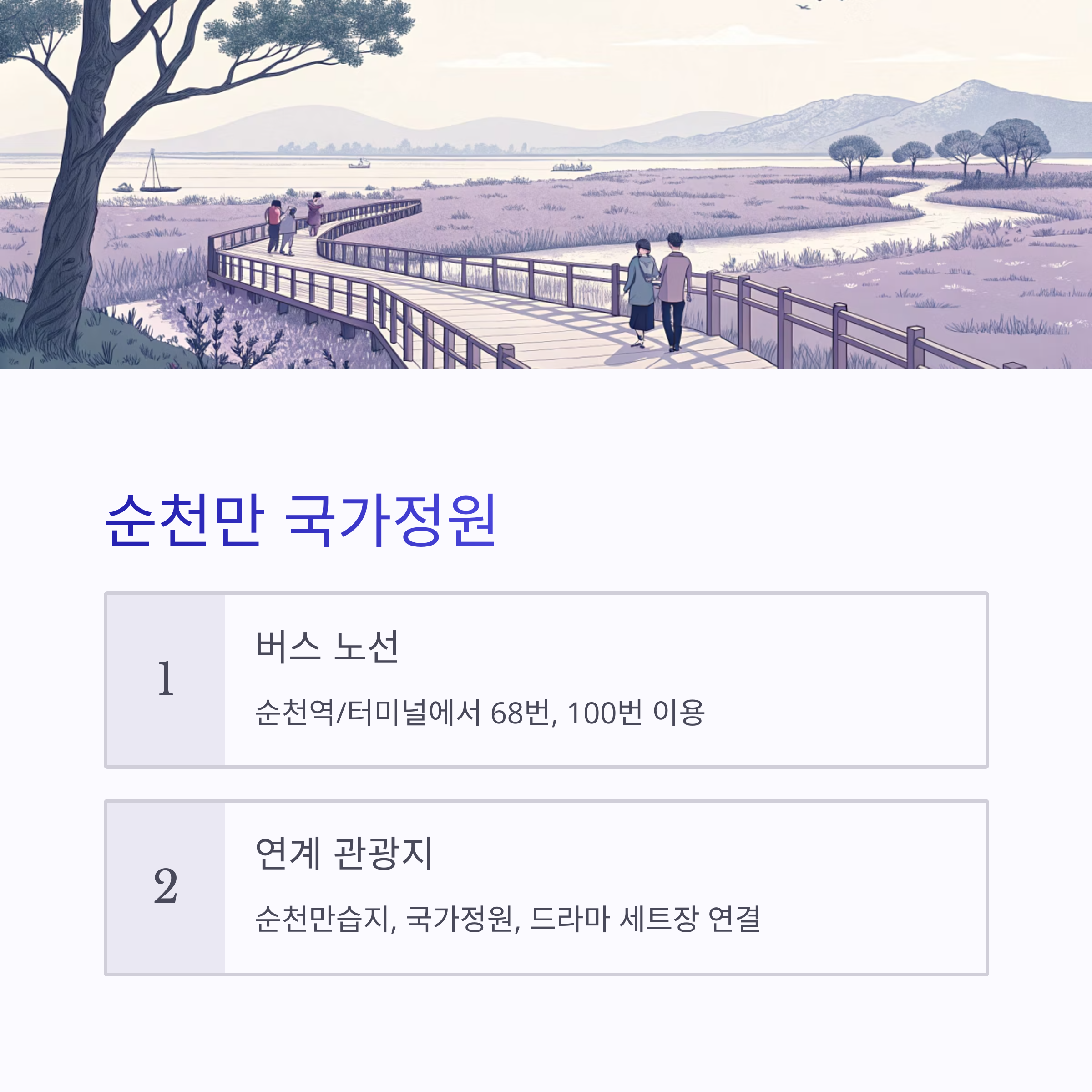 순천만습지, 국가정원, 드라마 세트장까지 모두 버스로 이동 가능하며