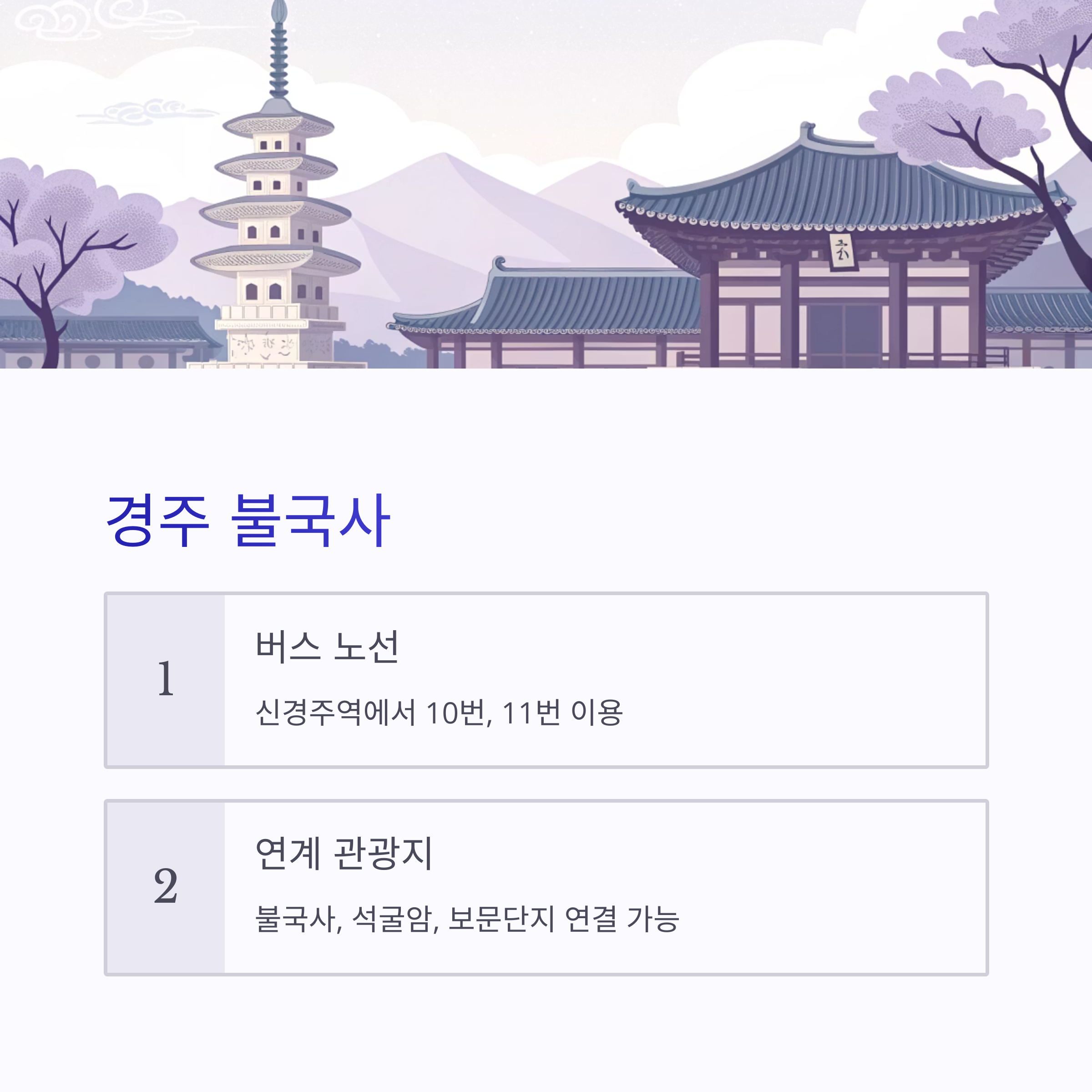 역사와 문화가 살아 숨 쉬는 불국사, 석굴암, 그리고 보문단지를 버스로 연결할 수 있어