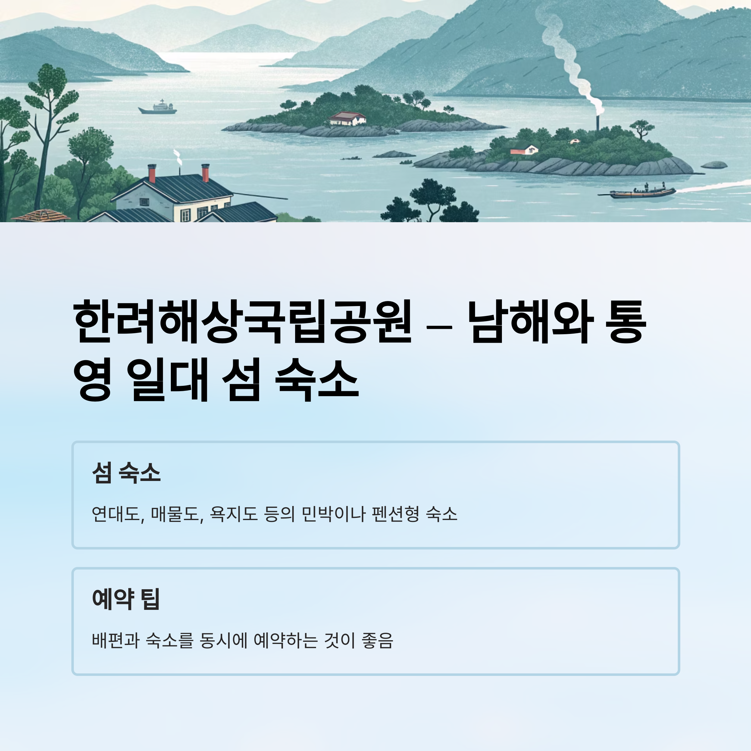| 한려해상 | 섬 민박, 펜션 | 배편과 숙소를 함께 예약해야 안정적 |