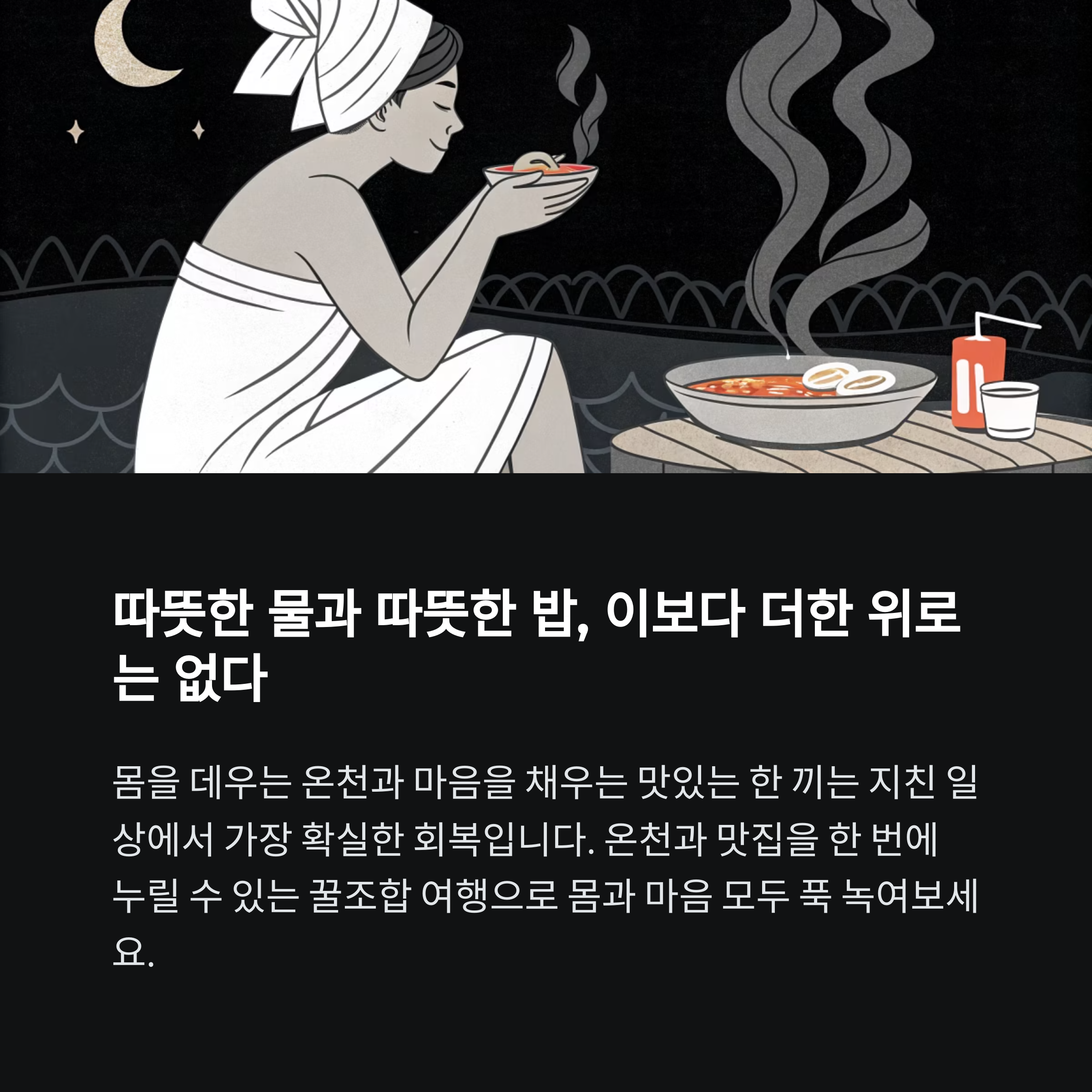 온천과 맛집을 한 번에 누릴 수 있는 꿀조합 여행으로
