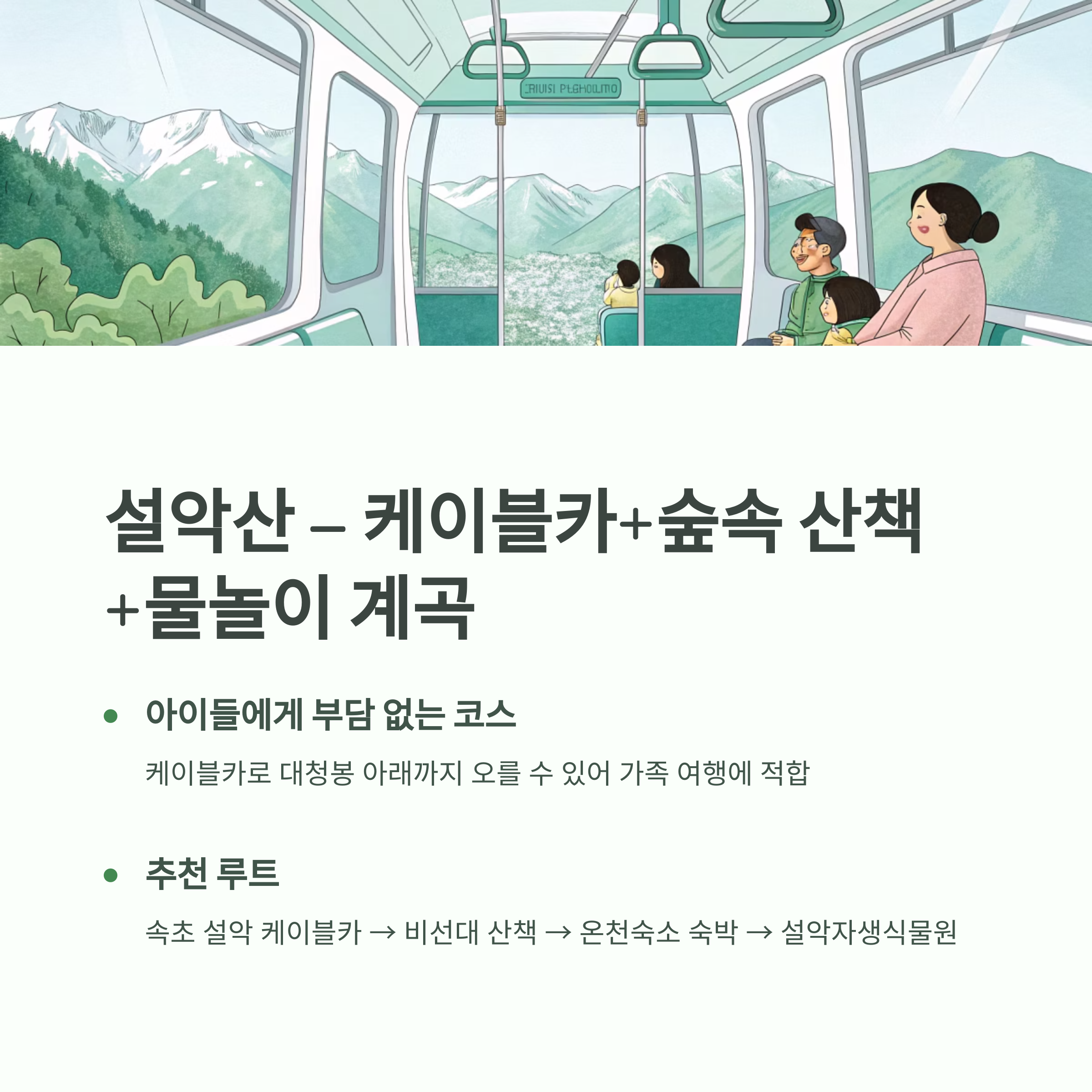 | 설악산 | 케이블카+비선대+자생식물원 | 온천숙소 | 아이 동반 가능 코스 |