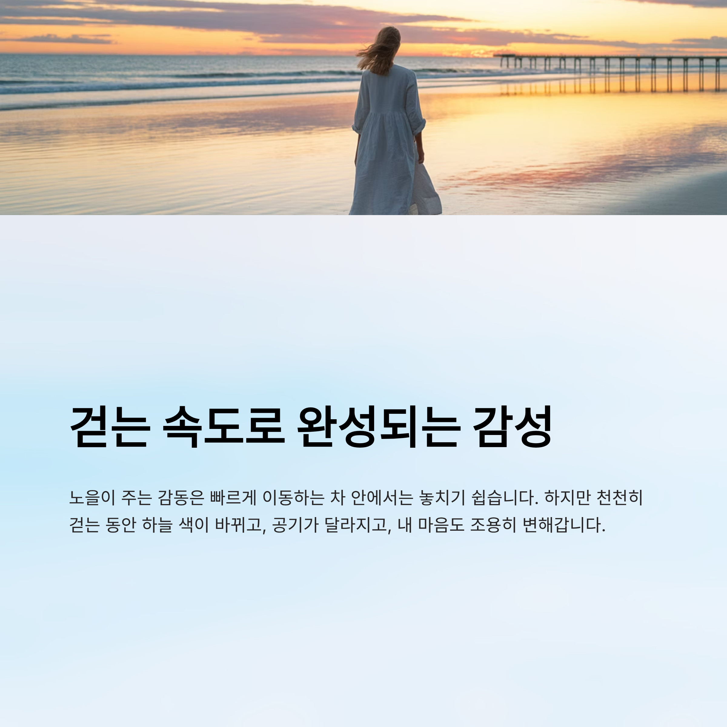 특히 노을이 붉게 물드는 순간, 천천히 걸을 수 있다면