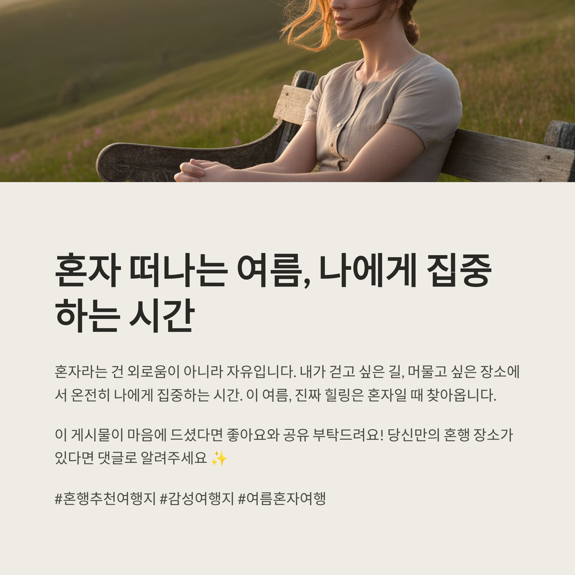 이 여름, 진짜 힐링은 혼자일 때 찾아옵니다.