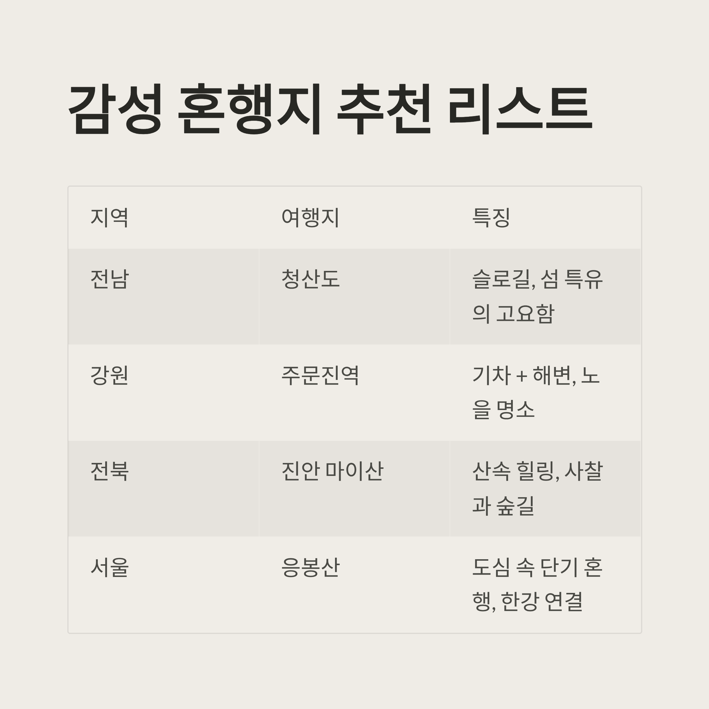 감성 혼행지를 위한 추천 리스트
