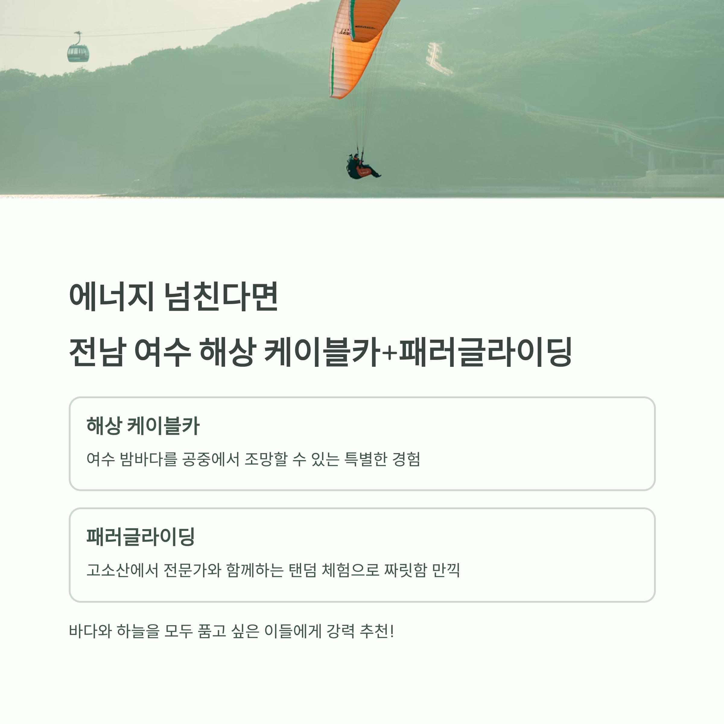 에너지가 넘친다면 ‘전남 여수 해상 케이블카+패러글라이딩’