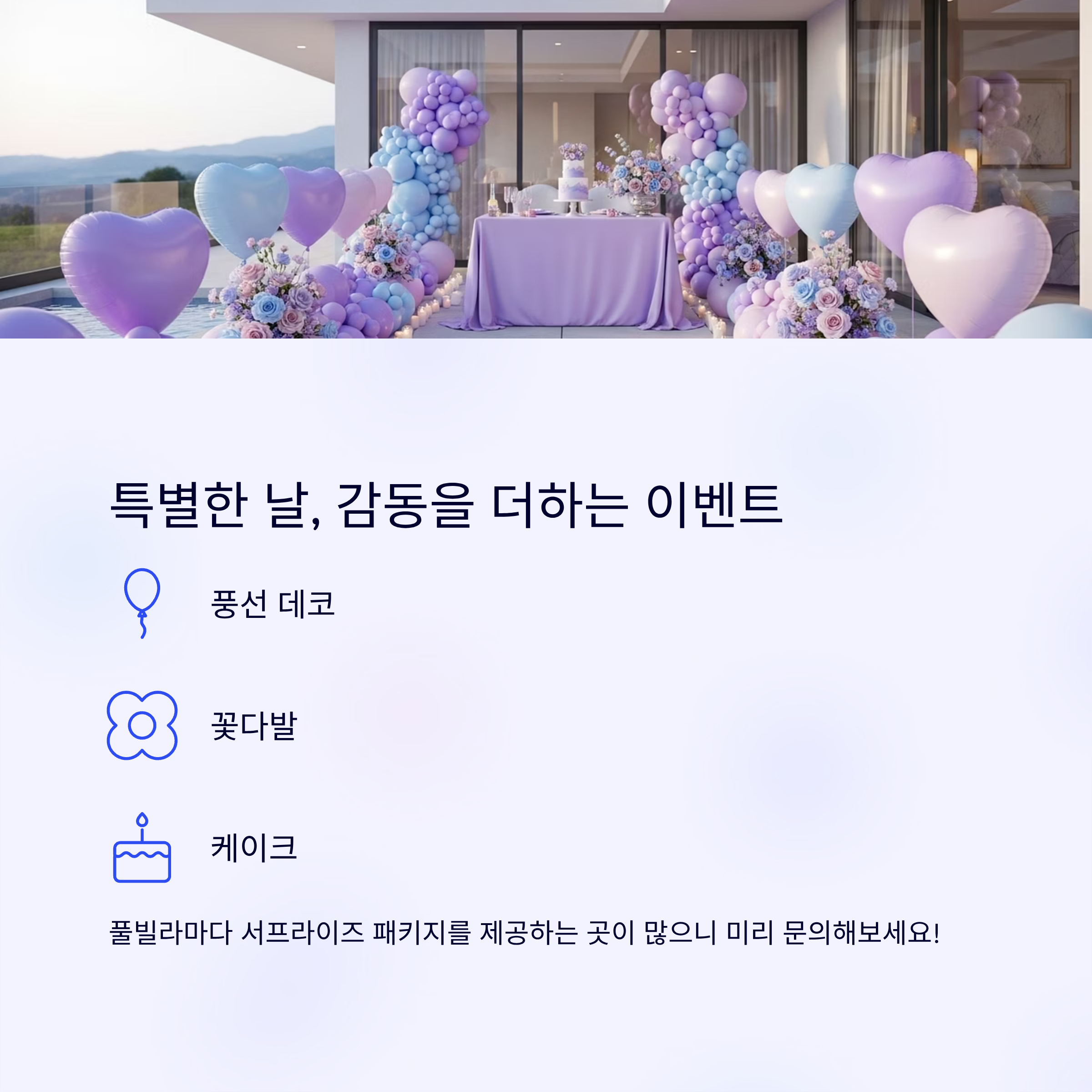 풀빌라마다 서프라이즈 패키지를 제공하는 곳도 많아
