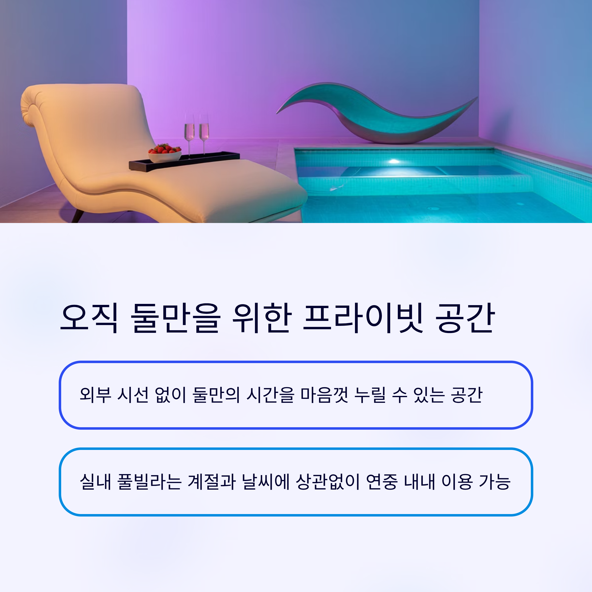 프라이빗한 공간에서 눈치 보지 않고 즐기는 수영,