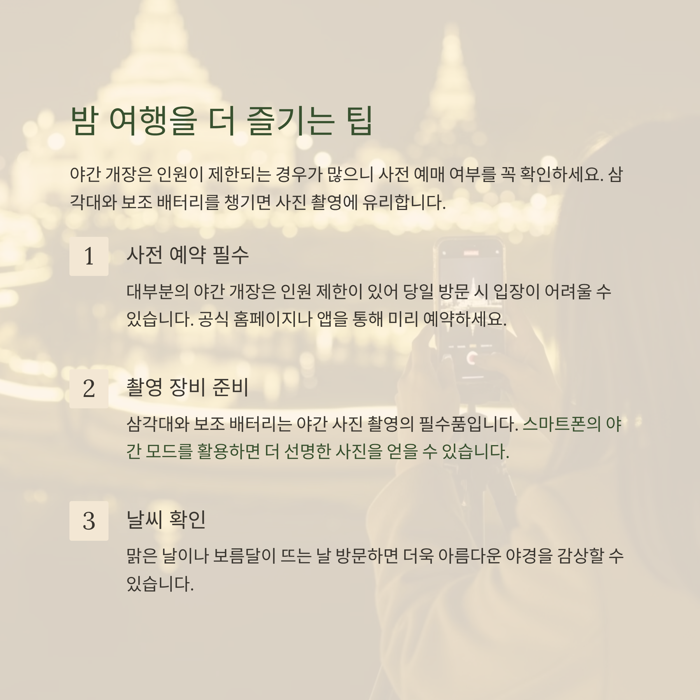 야간 개장하는 여행지, 밤에 더 아름다운 곳