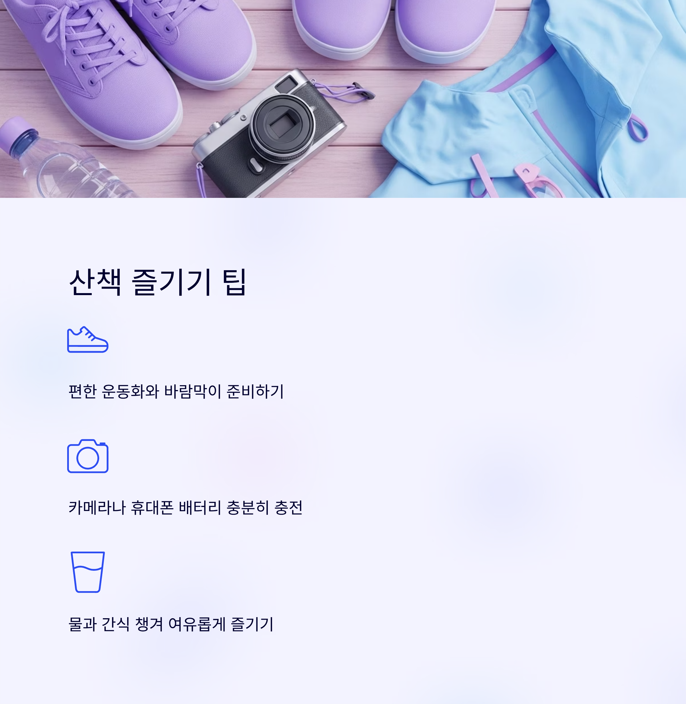편한 운동화와 바람막이를 준비하면 좋습니다.