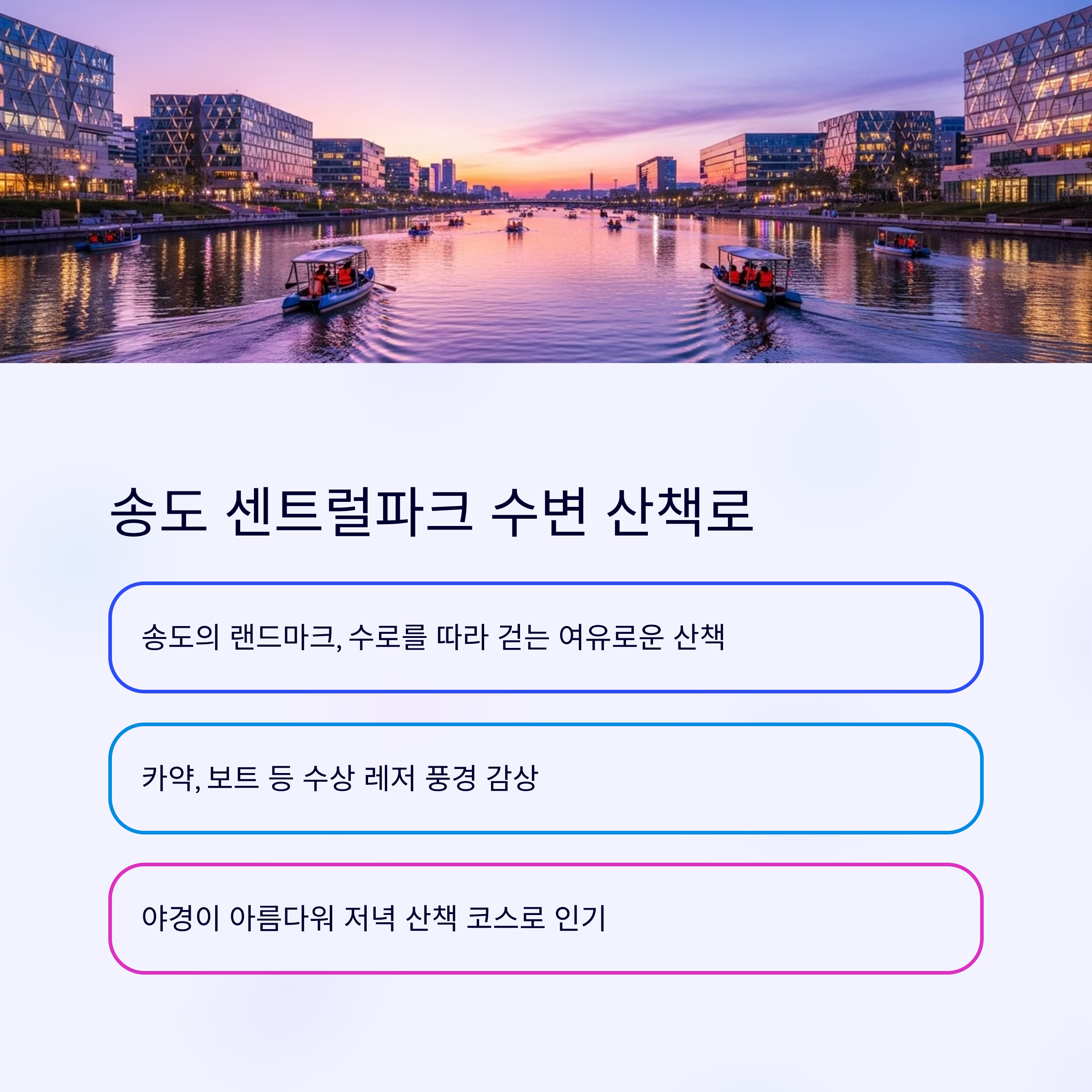 | 송도 센트럴파크 | 수변 산책, 야경 | 저녁 |