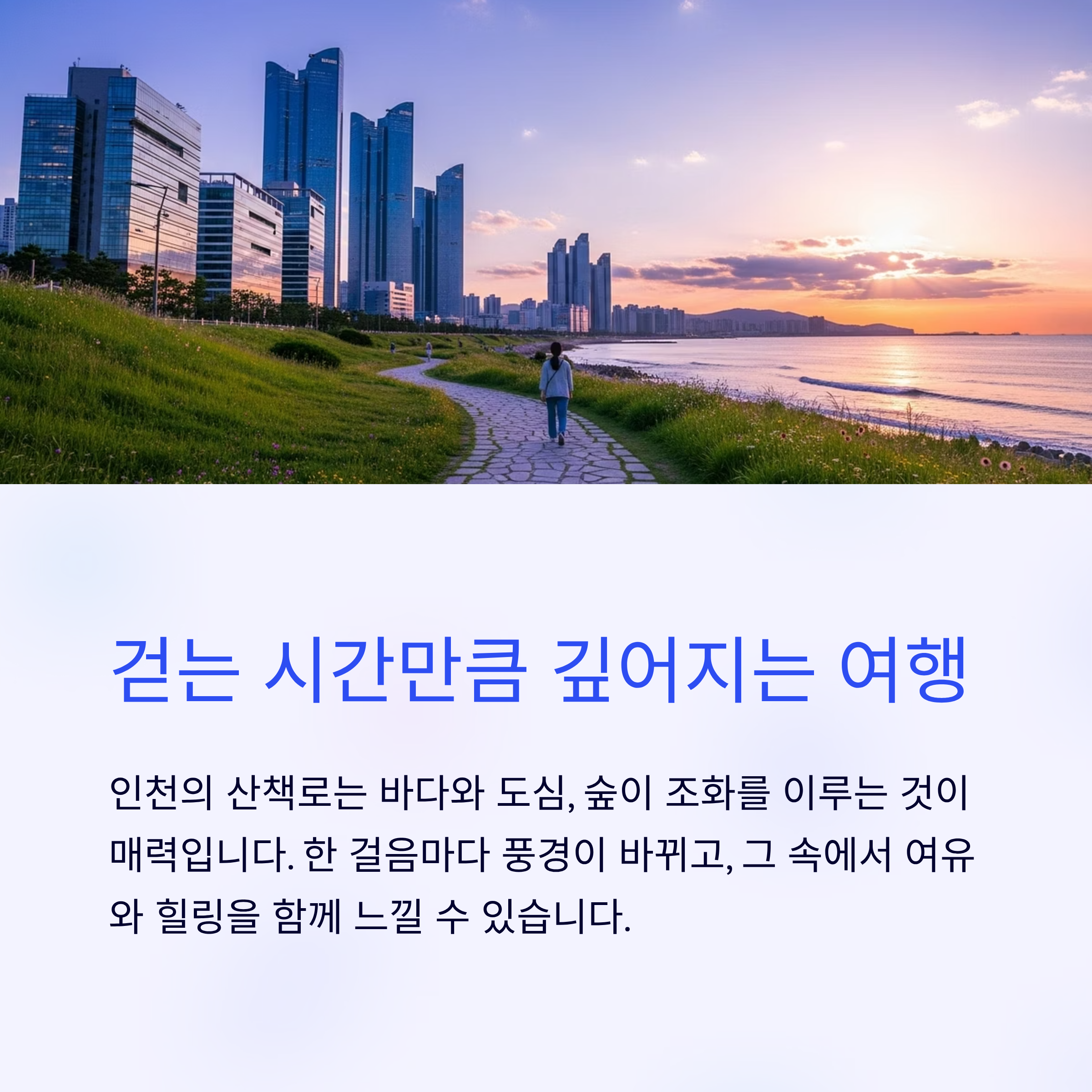 도심 속 가까운 곳부터 바다와 이어지는 길까지, 인천의 산책로를 소개합니다.