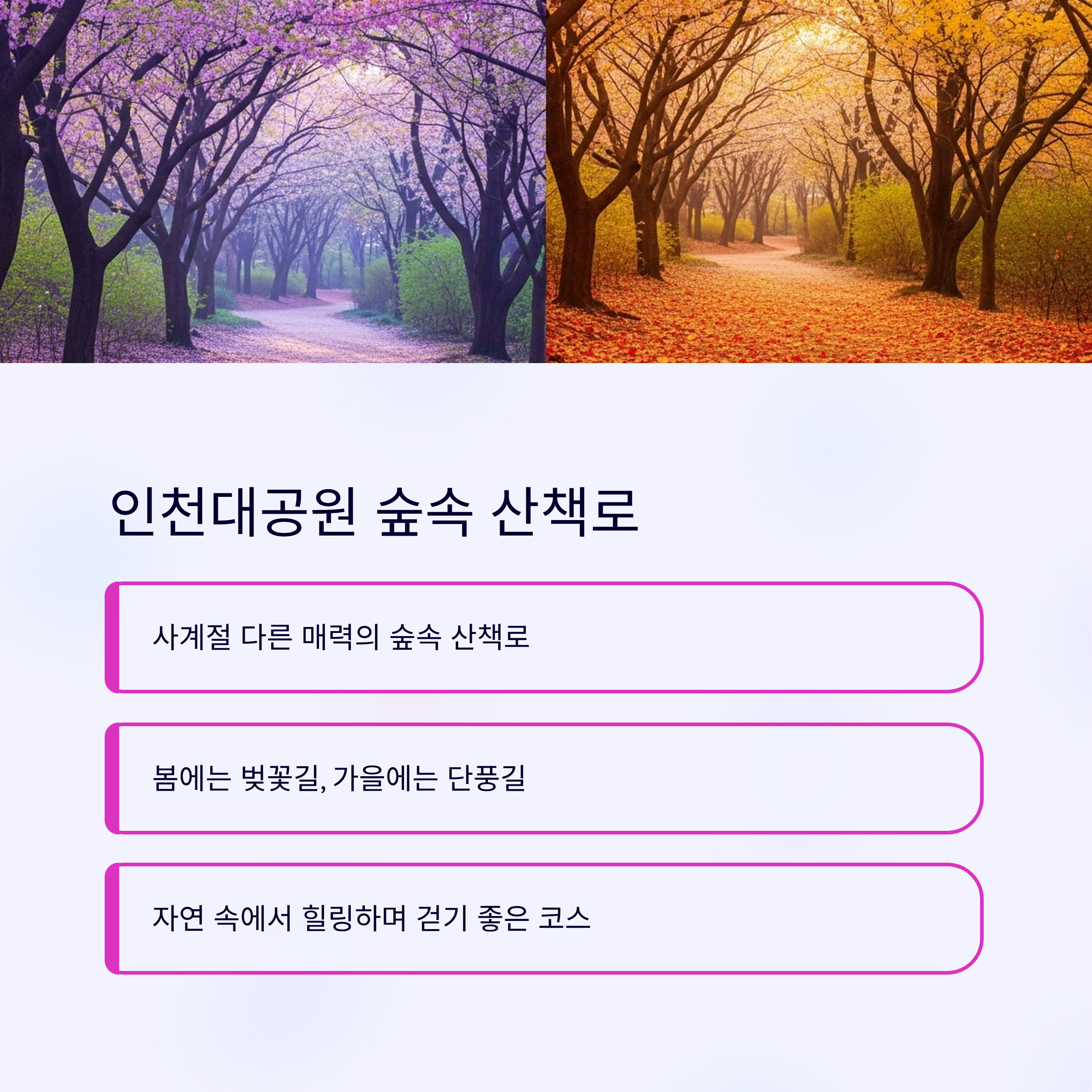 인천대공원은 사계절 다른 매력을 가진 숲속 산책로가 매력입니다.