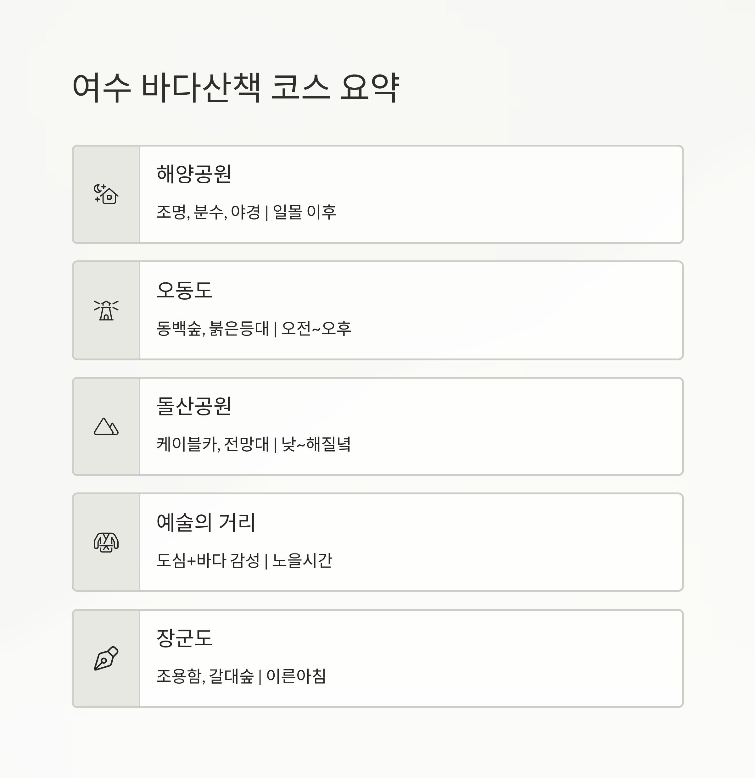 여수 바다산책 코스 요약 표