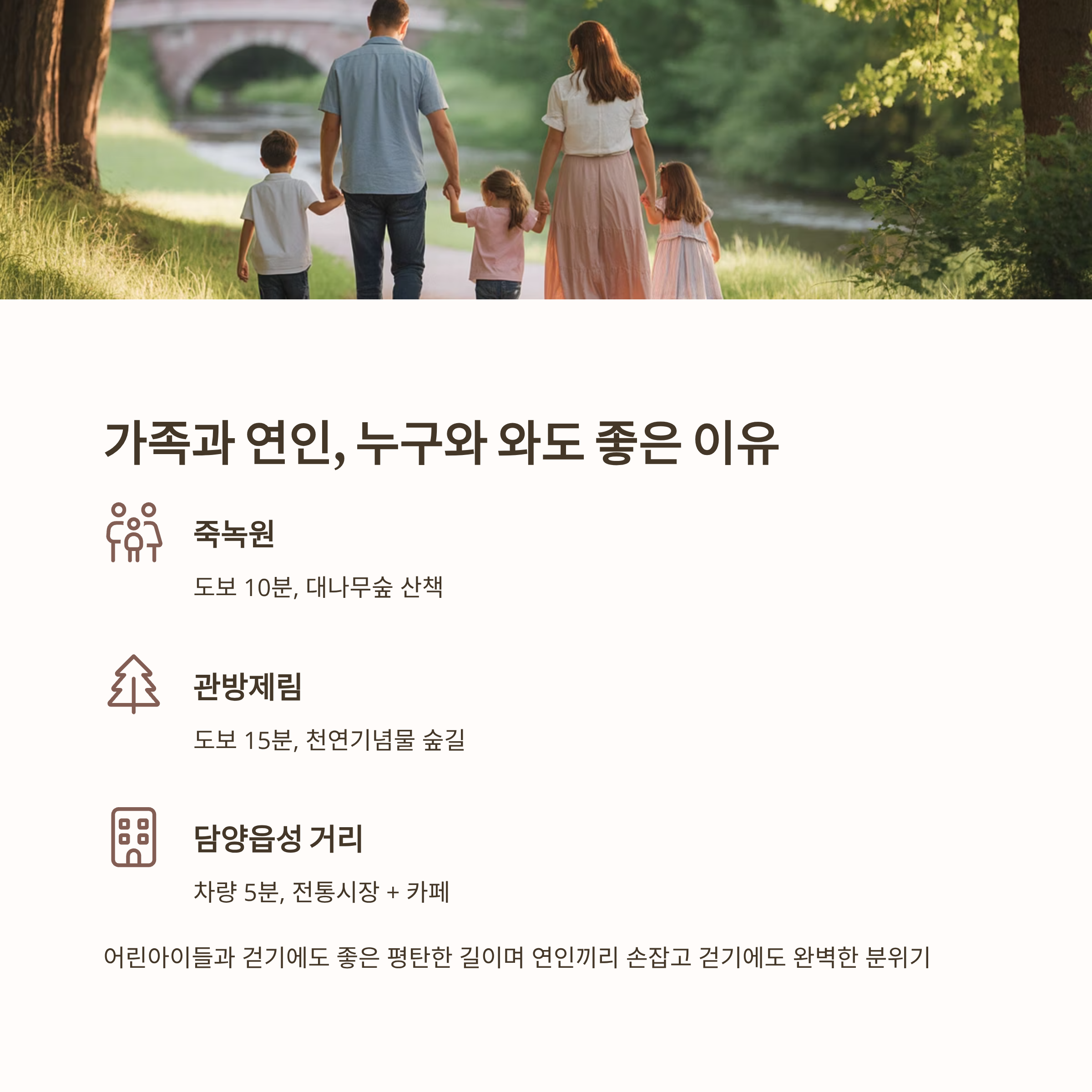 | 담양읍성 거리 | 차량 5분 | 전통시장 + 카페 |